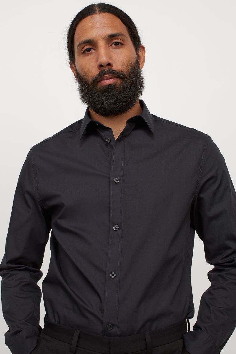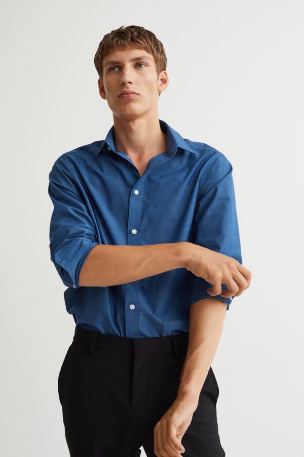 Camicia in tessuto con trattamento easy-iron. Colletto turn-down e abbottonatura classica. Maniche lunghe, fessino con bottone e polsino regolabile con bottone. Cucitura sulla schiena e carré dietro, bordo inferiore leggermente arrotondato. Slim Fit: linea aderente con punto vita marcato e spalle strette, per una silhouette attillata.