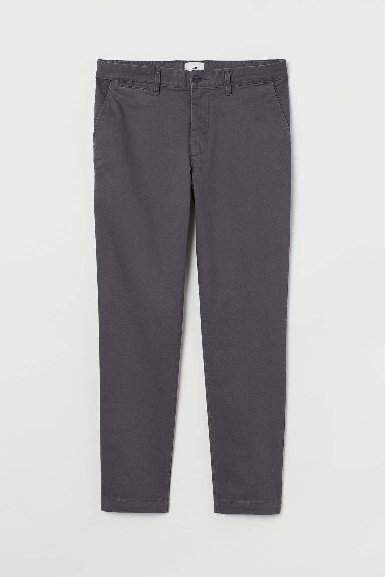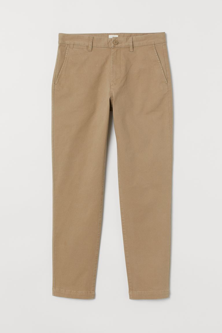 Chinos in twill di cotone super elasticizzato. Tasche laterali, tasche posteriori a filetto con bottone e taschina portamonete. Patta con cerniera. Slim Fit – Linea aderente su cosce, ginocchia e caviglie per una silhouette attillata.